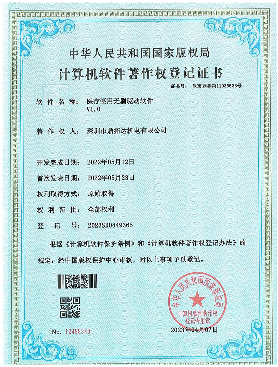 首頁->產品認證->醫療泵用無刷驅動軟件 V1.0